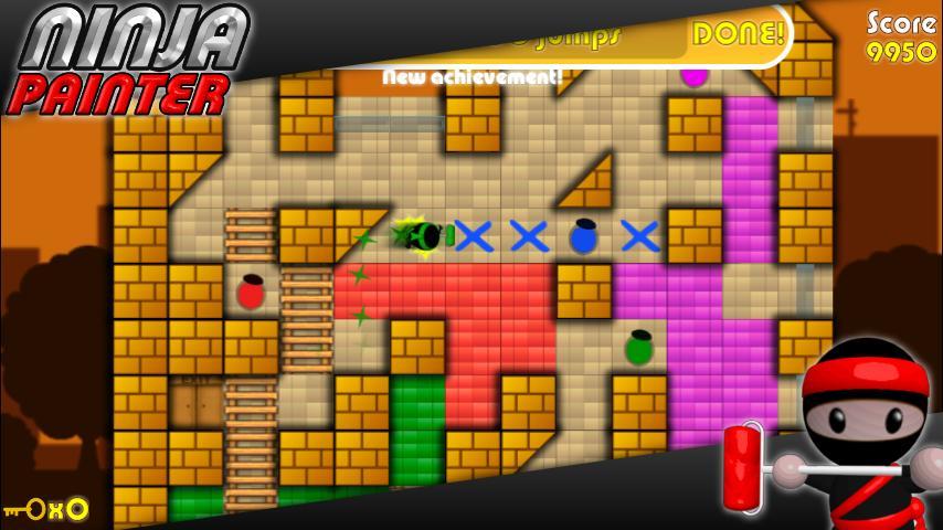 Ninja Painter es un colorido juego de rompecabezas de arcade con juego adictivo. ¡Pinte las paredes a través de 69 niveles en 4 ubicaciones diferentes e intente obtener todos los logros!